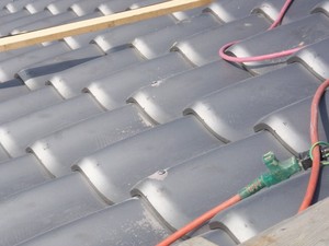 いぶし瓦が台風などで飛ばないようにステンレスビスで止めています。