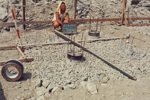 この当時ポンプなどないし、生コンクリートも無いので、現場で練り、ウインチでホッパーを吊ってコンクリートを上に上げていました。